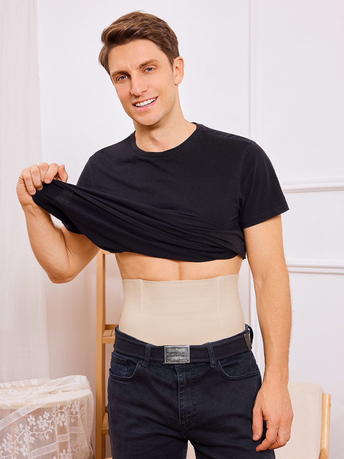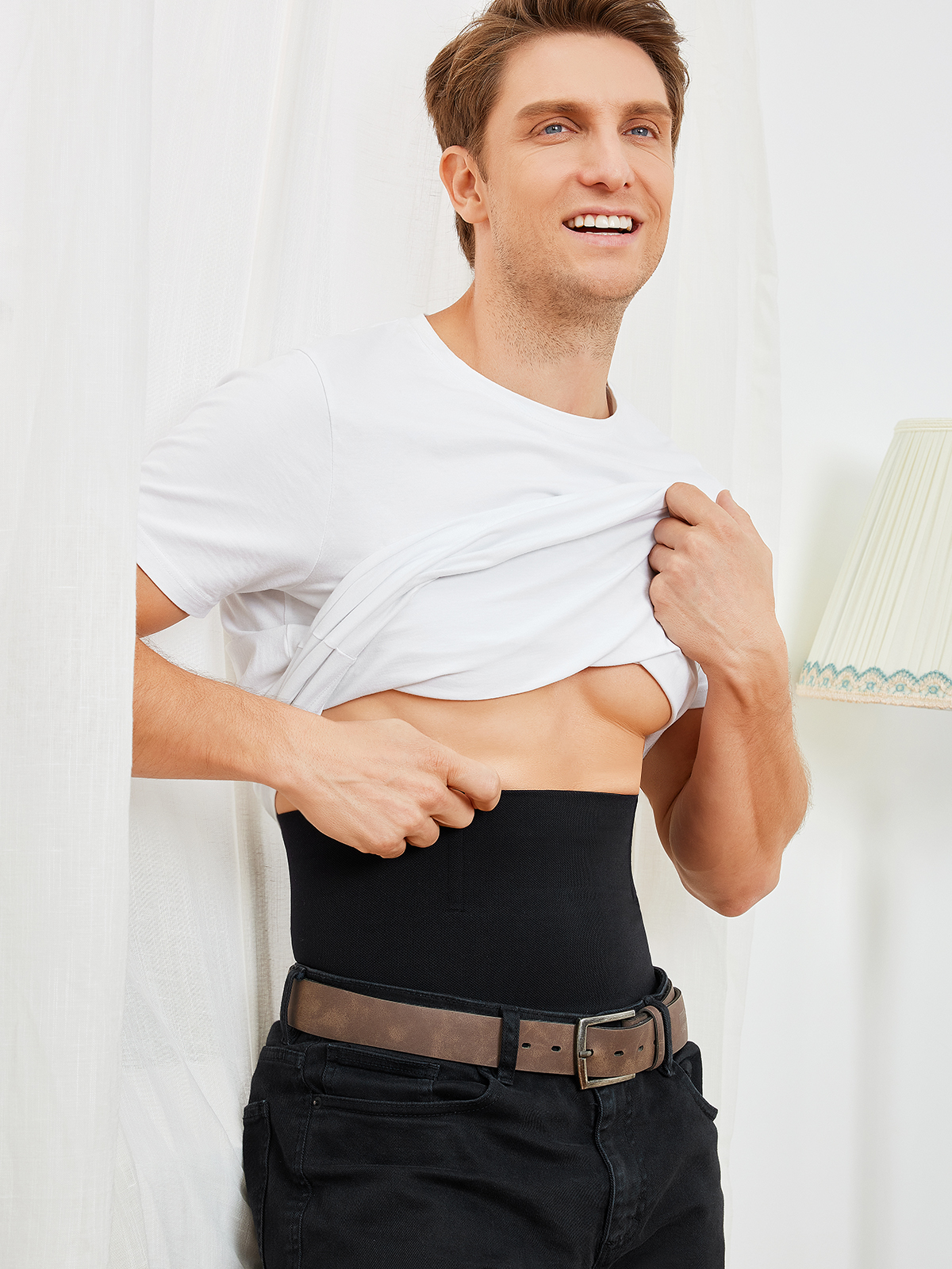 - Double-layer design firms the waist and belly, minimizing side bulges.