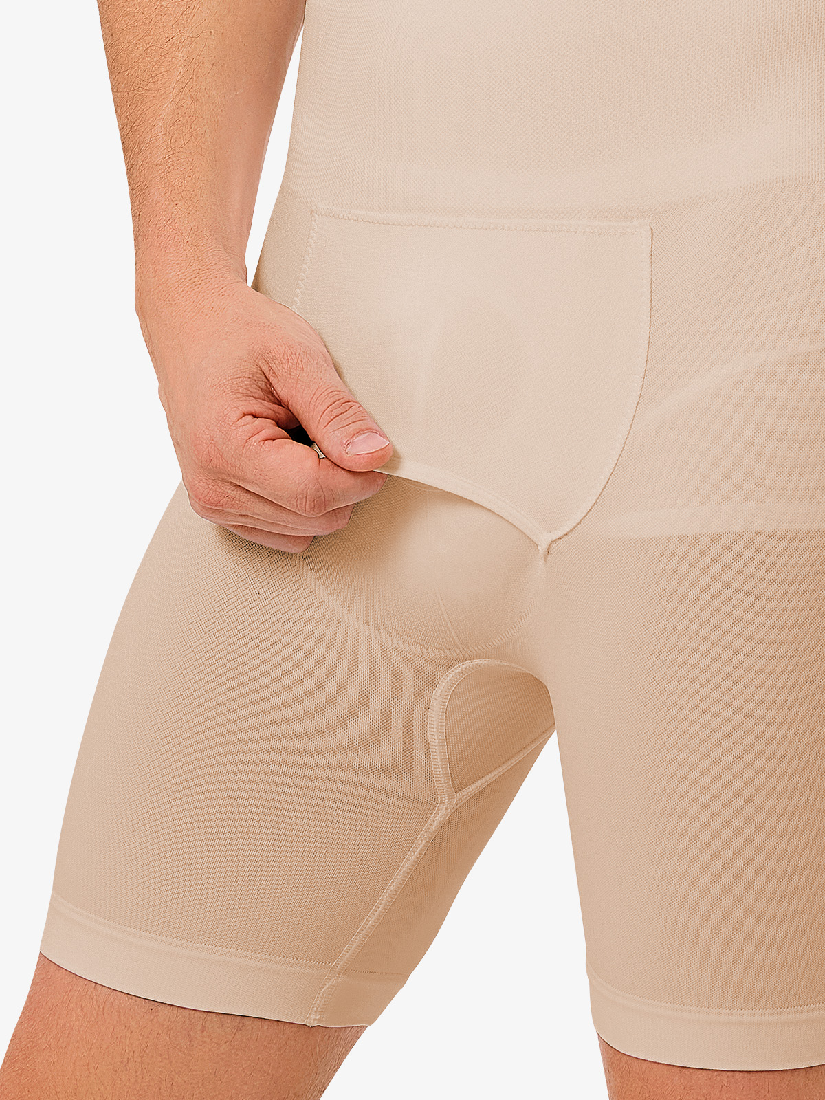 - Crotch opening provides hassle-free restroom access.
